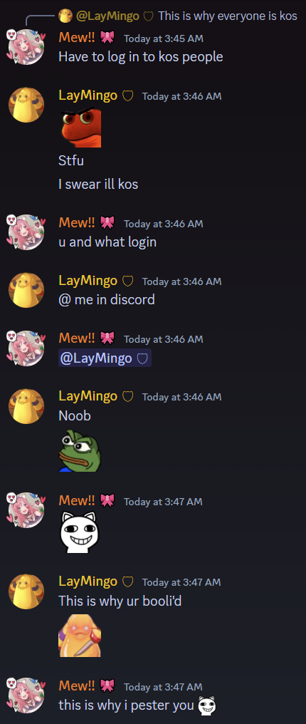 We're going to hash things out but we're going to do it like we're sparring appropriately until we can channel things in a more effective resolution method. I will not tolerate long-term drama or grudges on this server, and we're going to either get along here in the end or you're gonna get the fuck out because *this game is more than petty drama: it is our childhoods, it is our passions, it is our love, and we should never forget that*.